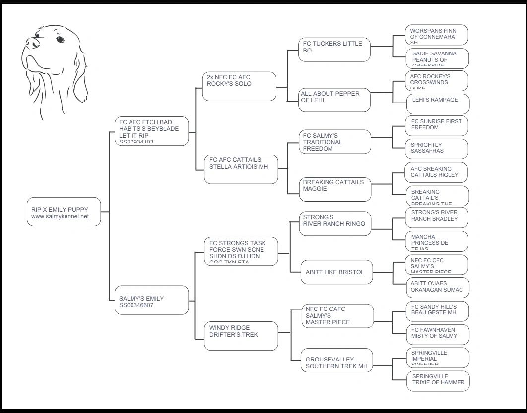 Emily goes back to “Cliff” our National Champion 3 times. Salmy Kennel is very excited about this breeding.